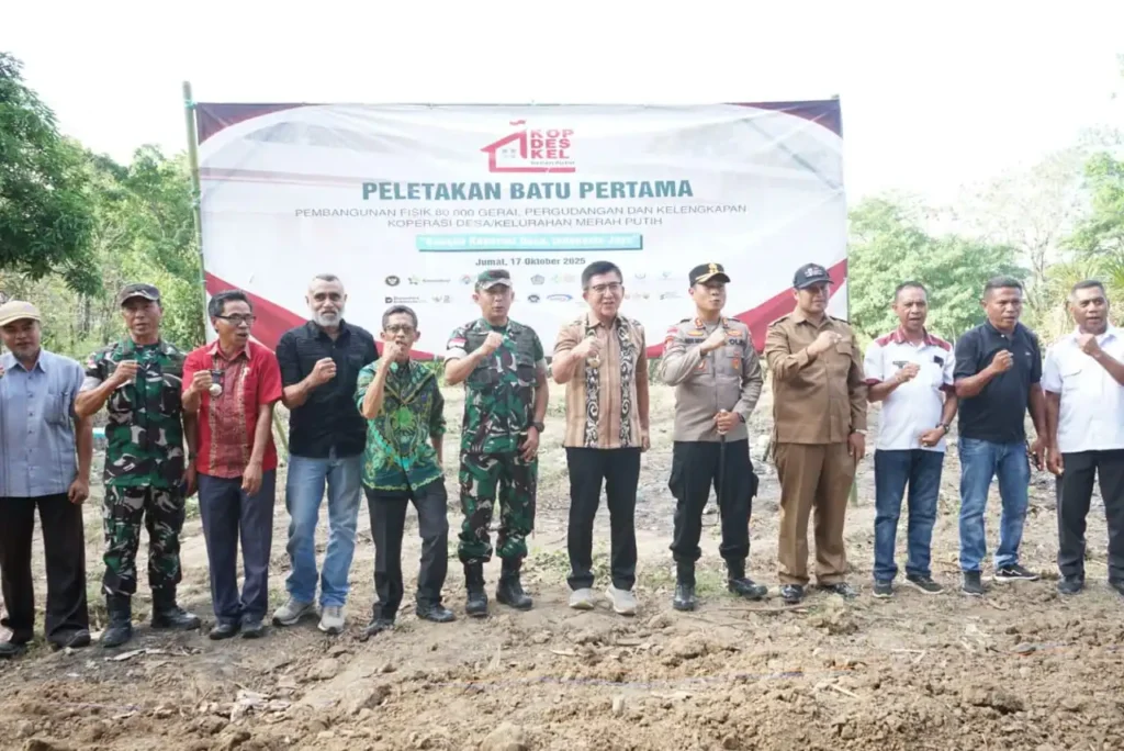 ATAMBUA – Desa Manleten, Kecamatan Tasifeto Timur, Kabupaten Belu, Provinsi Nusa Tenggara Timur menjadi saksi dimulainya langkah besar dalam membangun kemandirian ekonomi masyarakat melalui pelaksanaan Peletakan Batu Pertama Pembangunan Fisik 80.000 Gerai Pergudangan dan Kelengkapan Koperasi Desa/Kelurahan Merah Putih Se-Indonesia. Kegiatan ini diselenggarakan secara nasional melalui zoom meeting dan diikuti secara serentak oleh seluruh daerah di Indonesia, termasuk Kabupaten Belu sebagai salah satu titik pelaksanaan di wilayah perbatasan Nusa Tenggara Timur. Dengan mengusung tema “Bangun Koperasi Desa, Indonesia Jaya”, kegiatan ini menjadi simbol kuat dari semangat membangun ekonomi kerakyatan yang berkeadilan dan berdaya saing dari desa untuk Indonesia.