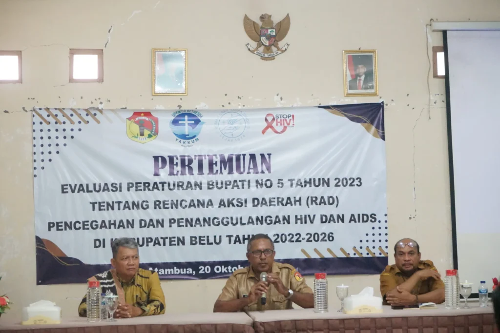 Hadir dalam kegiatan ini Bupati Belu, Willybrodus Lay, S.H, Pimpinan Perangkat Daerah Kabupaten Belu terkait serta perwakilan dari UPKM/CD Bethesda YAKKUM. Pertemuan ini bertujuan untuk mengevaluasi capaian pelaksanaan Peraturan Bupati Nomor 5 Tahun 2023 dan memperkuat langkah-langkah koordinatif antara pemerintah daerah dan mitra pembangunan dalam penanggulangan HIV/AIDS secara komprehensif.
